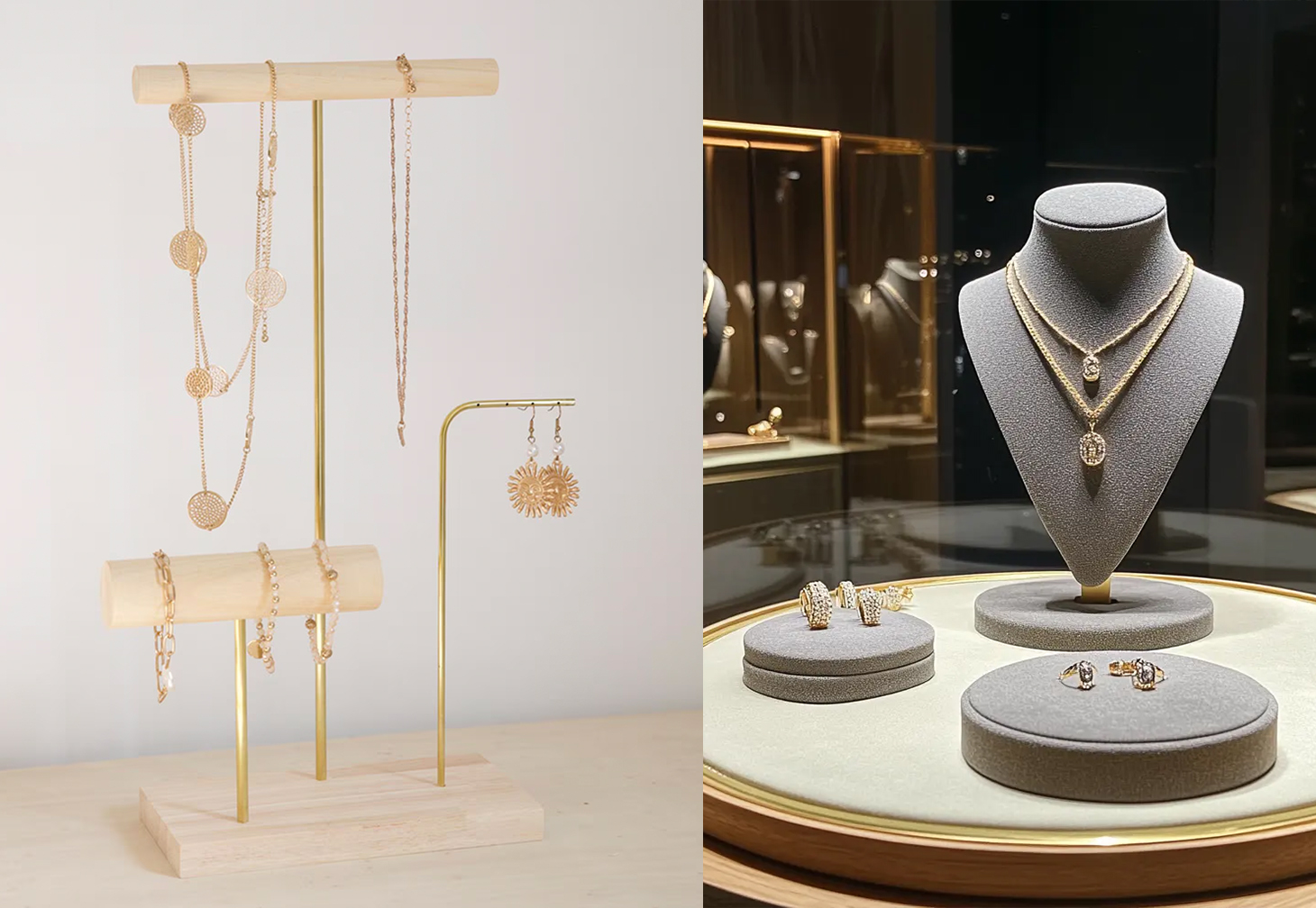 Suspended jewellery displays create an impression of weightlessness and luxury. Use transparent materials, magnetic levitation platforms, or fine wire to make pieces appear as though they are floating. This technique not only draws attention but also reinforces the exclusivity of your products.