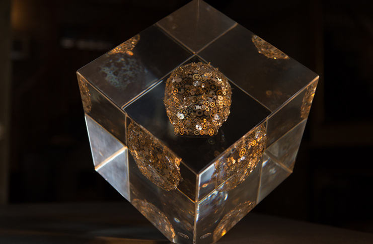 The production process for “Hallucination” takes double the time of any existing sculpture within the Berd Vay’e assortment of modern art – further exemplifying this new offering’s stature as “2 sculptures in 1.” The creation process takes a full 3-4 days with layers of Lucite® being carefully cast to ensure no air bubbles and providing a natural magnifying effect to better view the vintage watch parts within.
