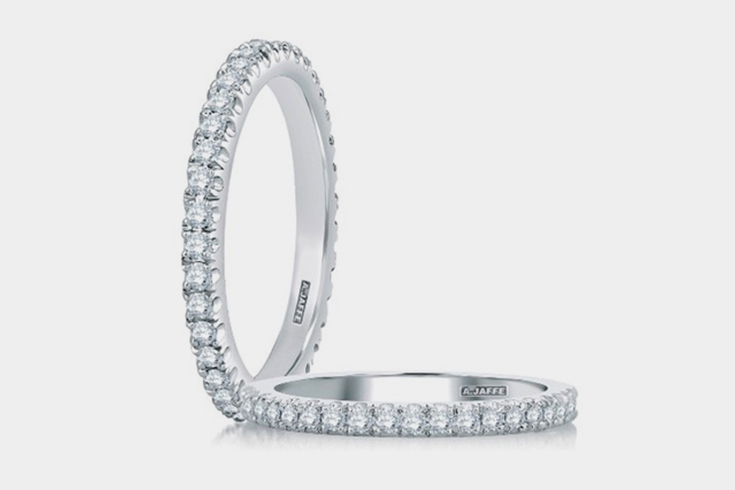 At Solomon Brothers, Rebekah and Damiere found bands that spoke to their hearts. Rebekah selected vintage-inspired bands adorned with oval-cut diamonds from A. JAFFE, while Damiere chose sleek, minimalist white gold bands. Their choices reflect a harmony of style and personal significance.