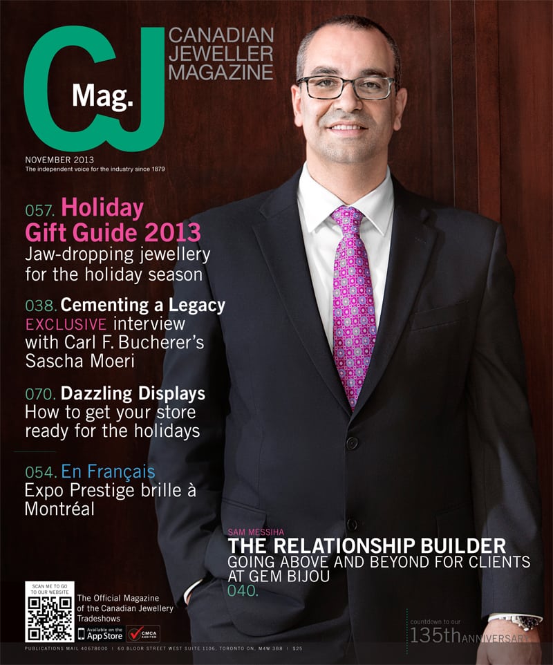 HomeArchivesNovember 2013 Archives November 2013 By Canadian Jeweller May 16, 2014 0 1541 Share FacebookTwitterPinterestWhatsApp FacebookTweetPinLinkedIn Author: Canadian Jeweller FacebookTweetPinLinkedIn Share FacebookTwitterPinterestWhatsApp Previous articleSeptember/October 2013Next articleIssue December/January 2014 Canadian Jeweller RELATED ARTICLES Archives Design Workshops Offers New Opportunities for Jewellers April 15, 2019 Archives June/July 2015 June 8, 2015 Archives April/May 2015 April 24, 2015 LEAVE A REPLYLog in to leave a comment CJ SOCIAL MEDIA GOLD DEPOT GET OUR APP Most Popular Angel Guss: Colourful Gemstone Romance for Canadian Showcases October 24, 2025 Remorphosis: Branding, Diamonds & Watches in the Multi-Generational Buy October 23, 2025 Trillium Watch Service Debuts at Time & Shine Toronto (Nov 2–3) October 23, 2025 Empire Group Joins Time & Shine Toronto as Canada’s Leading Watch Service Partner October 22, 2025 Load more POPULAR CATEGORIESNews1771Home765Business News393Event161Feature156Announcement70