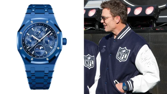 Then came the collector-grade flex: Tom Brady in a Royal Oak Selfwinding Perpetual Calendar in “Bleu Nuit, Nuage 50” ceramic (ref. 26674CD). In watch terms, this is the perfect “event wrist” combination: an iconic case shape, a hard-to-make material, and a complication that serious collectors immediately recognise. (Hodinkee)