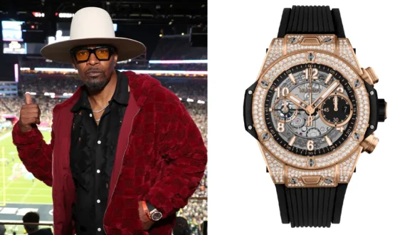 Watch-spotting coverage also pointed to Jamie Foxx in a Hublot Big Bang Unico King Gold Pavé — a watch that’s unapologetically built for cameras: warm-toned gold, aggressive case architecture, and diamonds that read instantly under stadium lighting. (Yahoo News)