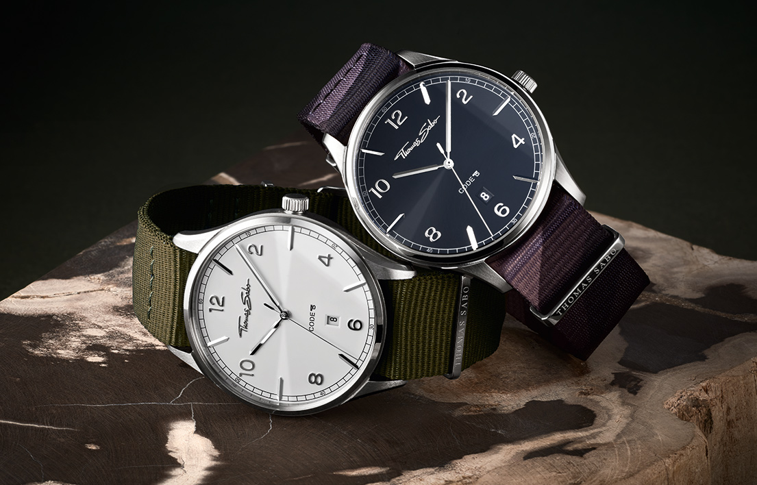 The CODE TS watch with a round 38 mm case and minimalist dial structure stands for the new unisex style ‘code’ by THOMAS SABO – a clear design with an exciting mix of modern look and 50s retro reference that can be worn alongside any lifestyle. Self-confident and individual, the CODE TS also offers special versatility: the watch’s fine-meshed Milanese bracelet is removable, so the watch can very easily be combined with NATO textile straps – a new complement to the range. From plain colours – to multi-coloured – to camouflage, depending on your taste, different designs and styles will adorn your wrist, from now and into the future.